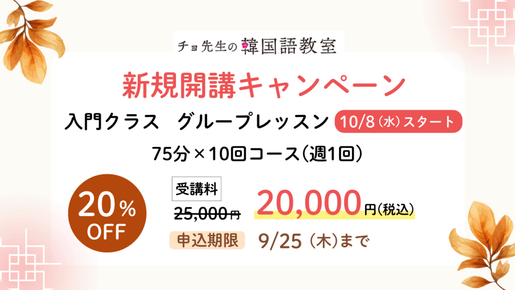東京・京王線「府中駅」徒歩7分のチョ先生の韓国語教室では、2025年10月より入門クラスを新規開講します。