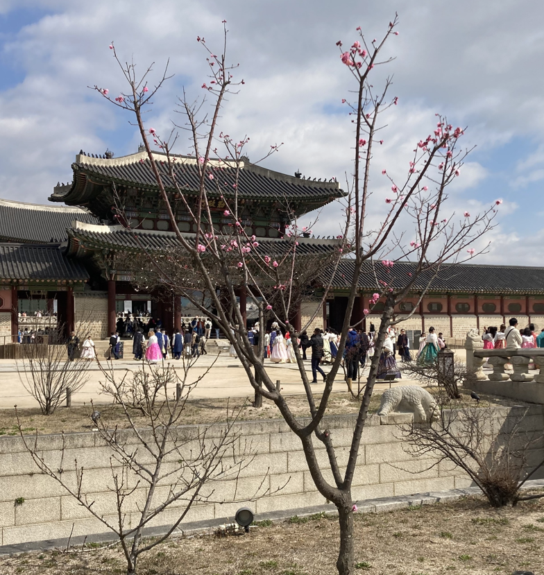 景福宮にもたくさんの花が咲いていました。こちらの梅はまだ3分咲きくらいでしょうか。